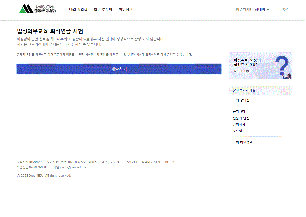 시험 결과가 계속 fail 로 나오고 재응시가 안됩니다. 확인부탁드립니다.
